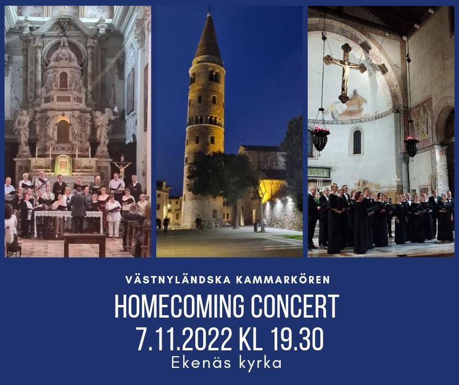 Hemkomstkonsert 10.11.2019 kl. 19:00 i Ekenäs kyrka med programmen som belönades med guld- och silverdiplom i körfestvivalen Canta al mar 2019 i Calella, Katalonien. Gratis inträde och programblad, frivillig insamling till församlingens kriskassa.
