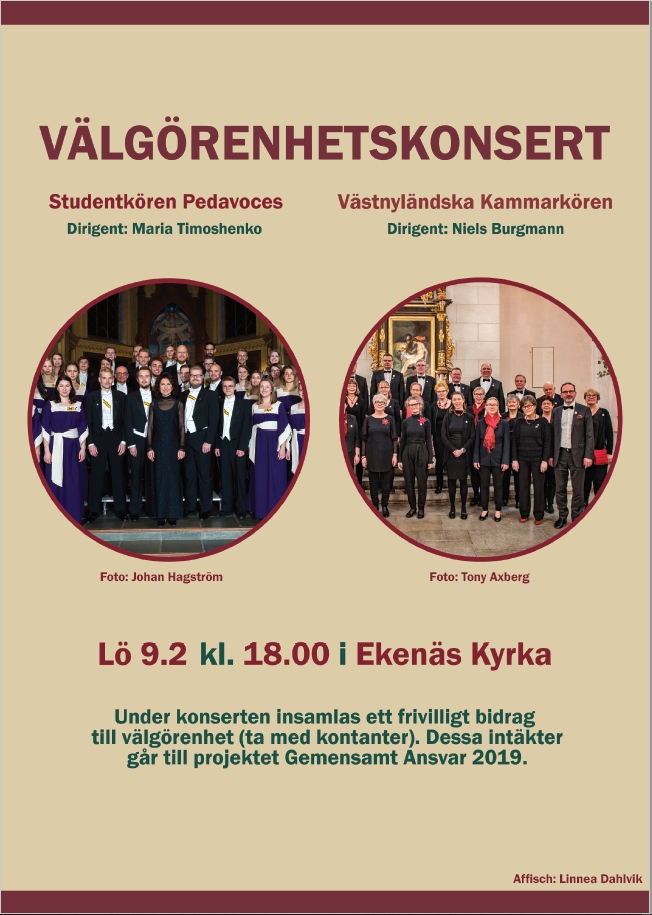 Hemkomstkonsert 10.11.2019 kl. 19:00 i Ekenäs kyrka med programmen som belönades med guld- och silverdiplom i körfestvivalen Canta al mar 2019 i Calella, Katalonien. Gratis inträde och programblad, frivillig insamling till församlingens kriskassa.